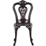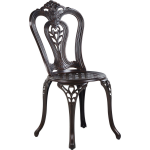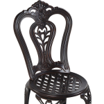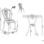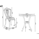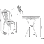 De tuintafel van de balkonset heeft een rond blad, verfraaid met een prachtig bloemmotief dat een vleugje retro-stijl toevoegt aan de set. De gewelfde stoelen passen perfect bij de stijl van de tafel. Dankzij de brede zittingen en robuuste constructie biedt deze set een comfortabele eetervaring voor twee personen.