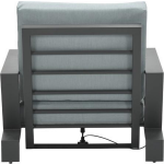 Het frame van de loungestoel is gemaakt van hoogwaardig aluminium met een beschermende poedercoating. Dit maakt de stoel niet alleen onderhoudsvriendelijk, maar ook roestvrij. De bijgeleverde kussens zijn voorzien van een waterafstotende coating, zodat je ze na een regenbui gemakkelijk kunt drogen. Bovendien zijn de kussenhoezen afritsbaar, waardoor je ze eenvoudig kunt reinigen.