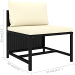 Met de zwarte kleur en crèmewitte kussens heeft deze loungeset een stijlvolle uitstraling die perfect past bij elke buitenruimte. Het materiaal van de set bestaat uit hoogwaardig PE-rattan en staal, waardoor duurzaamheid en kwaliteit gewaarborgd zijn.