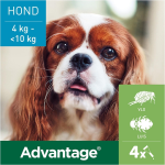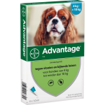 Advantage 100 Anti Vlooien en Teken Druppels Hond 4 - 10 kgAdvantage 100 is een snelwerkend middel dat vlooien en luizen doodt bij honden van 4 - 10 kg. Met slechts een eenvoudige druppel tussen de haren op de intacte huid van je hond, biedt dit product effectieve bescherming tegen vlooien. Bovendien doodt Advantage 100 ook vlooienlarven en bijtende luizen. Met een eenvoudige toediening en een werking van 4 weken, is dit prod... lees meer over dit product