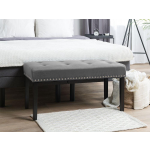 Wat dit meubelstuk extra bijzonder maakt, is de versiering met klinknagels van metaal. Deze geven het bankje een unieke en stijlvolle uitstraling. De zorgvuldig geplaatste klinknagels voegen een vleugje elegantie toe aan het ontwerp en maken dit bankje een waar pronkstuk in jouw huis.