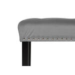 Stijlvol fluwelen bankje voor elke ruimteDit stijlvolle fluwelen bankje is een perfecte toevoeging aan jouw eetkamer, slaapkamer of woonkamer. Met zijn elegante design en comfortabele voering van zacht schuim zorgt dit bankje voor een heerlijke zitervaring. De grijze kleur geeft een moderne uitstraling aan elk interieur. Sfeervolle metalen klinknagelsWat dit meubelstuk extra bijzonder maakt, is de versiering met klinknagel... lees meer over dit product