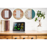 Met zijn zwarte en witte kleuren en kunststof behuizing is dit weerstation stijlvol en past het in elke omgeving. Het kan aan de wand worden gemonteerd dankzij de meegeleverde standaard. Het nettogewicht van het basisstation bedraagt 275 gram. De Bresser Thermo Hygro Quadro NLX wordt geleverd met een standaard garantie van 2 jaar, maar na online registratie kun je genieten van een garantieperiode van maar liefst 5 jaar.