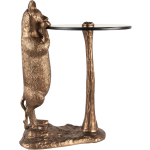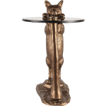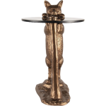 Ontdek de multifunctionele en handige Aluminium Bijzettafel met Katstandaard van het merk Clayre & Eef. Met een koperkleurige afwerking en een glazen blad is deze tafel een prachtige toevoeging aan elk interieur. Met een afmeting van 40x36x51 cm biedt deze bijzettafel voldoende ruimte voor een vaas met bloemen, lectuur of een dienblad vol hapjes. Bovendien is het tafeltje ook perfect te gebruiken als nachtkastje.
