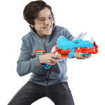 Beleef driedubbele dartactie met de Nerf DinoSquad Tricer-blast-blaster! Het geweldige dinosaurusdesign is gebaseerd op een Triceratops en zorgt voor een unieke speelervaring. Om de blaster te laden en toegang te krijgen tot de laadkamer, hoeft u alleen maar op de voorste hoorn van de dinokop te drukken en de blaster klapt open. Laad 3 darts en klap de loop weer dicht. Trek de haan naar beneden om de blaster door te laden en haal de trekker over om 1 dart af te vuren op je doelwit.