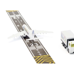 Maar waar starten en landen de vliegtuigen? Geen probleem! In deze set bevindt zich een rol van maar liefst vijf meter zelfklevende tape met typische markeringen van een startbaan. Met behulp van een schaar knip je gemakkelijk de perfecte lengte en de tape hecht zich op elk glad oppervlak of kortpolig tapijt, waardoor je een realistische speelomgeving kunt creëren.