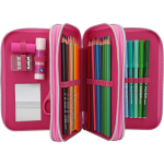 Met dit etui heb je alles wat je nodig hebt voor school binnen handbereik. Het is voorzien van drie aparte vakken die allemaal gevuld zijn met essentiële schoolspullen. Zo vind je er een schaar, lijm, puntenslijper, gum, potloden, kleurpotloden, viltstiften en zelfs een klein spiegeltje! Of je nu moet tekenen, schrijven of knutselen, dit etui biedt alles wat je nodig hebt.