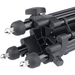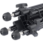 Dit driedelige aluminium statief biedt een maximale werkhoogte van 155 centimeter, waardoor je gemakkelijk kunt werken op verschillende hoogtes. Voor een stevige grip op ruwe ondergronden kun je de spikes uit de rubberen voetjes draaien, zodat je statief altijd stabiel staat.