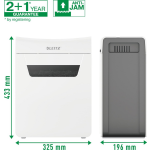 In de doos vind je de Leitz IQ Protect Papierversnipperaar 8X met de afmetingen van 355 x 204 x 351 mm en een gewicht van 4,7 kg. Het apparaat is uitgevoerd in het wit en wordt geleverd met een opvangbak van 14 liter. Met deze papierversnipperaar haal je niet alleen een functioneel apparaat in huis, maar ook een stijlvolle toevoeging aan je interieur.