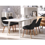 De stoelen worden gedeeltelijk gemonteerd geleverd en zijn binnen 20-40 minuten volledig in elkaar te zetten. Bovendien zijn ze gemakkelijk te onderhouden. De polyester bekleding kan eenvoudig worden gereinigd met een droogshampoo en een natte spons of mild schoonmaakmiddel. De beukenhouten poten dienen met een mild schoonmaakmiddel en een zachte doek schoongemaakt te worden, altijd in de richting van de houtnerf. Met de Beliani MELFORT Set van 2 stoelen in zwart haal je niet alleen comfort en stijl in huis, maar ook een product van hoogwaardige kwaliteit. Bestel deze set vandaag nog en geniet binnenkort van ultiem zitcomfort in jouw eetkamer.Korte specificaties