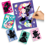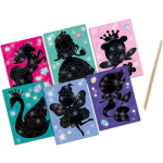 Met zes verschillende sprookjesachtige designs zal je keer op keer verrast worden. Krab voorzichtig de kraslaag weg en laat je verbazen door de heldere kleuren die tevoorschijn komen. Maar het wordt nog beter - elk design heeft een holografisch effect dat de figuren een magische gloed geeft. Het voelt als het openen van een schatkist vol kleurrijk plezier!