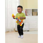 Druk op de knipperende toetsen en laat de muziek beginnen! Tijdens de speelstand 'Gitaarpret' kun je je eigen muziek maken met je favoriete gitaar- of dierengeluid. Of kies voor de speelstand 'Dierenband' waar je samen met de tijger, olifant, papegaai, kikker en beer kunt jammen op de tien te gekke liedjes die zij zingen. Rock, Blues en Country, deze gitaar biedt het allemaal!