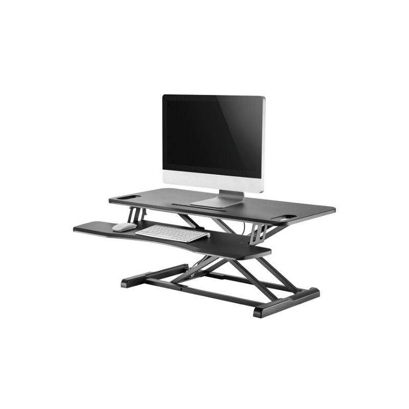 Het NewStar NS-WS300BLACK zit-staande werkstation is de ultieme oplossing voor degenen die behoefte hebben aan een gezonde zit-staande werkomgeving. Met een groot bovenste werkoppervlak en een handige onderste laadbak biedt dit werkstation voldoende ruimte voor al je apparatuur en accessoires.