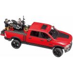 De laadklep van de Dodge RAM kan geopend worden en de deuren kunnen worden geopend voor extra realisme. Het set bevat een auto, motor, bestuurder en een helm. Laat je kind zijn spullen vervoeren met de Dodge RAM of door de stad rijden met de motor achterop. Geschikt voor kinderen vanaf vier jaar.