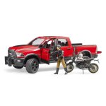 Stap in de wereld van avontuur met de Dodge RAM en motor van Bruder. Deze gave set biedt eindeloze mogelijkheden voor speelpret. De bijgeleverde poppetje kan op de motor zitten terwijl je kind rondrijdt in de stoere Dodge RAM.