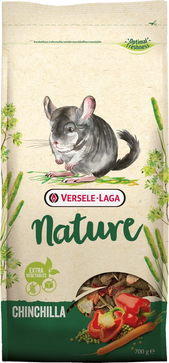 Gevarieerde vezelrijke mengeling voor chinchilla's De mengeling voor chinchilla's van Versele-Laga heeft een granenvrije samenstelling met extra groenten vol vitaminen en mineralen. De vezelrijke mengeling bevat veel verschillende grassen, kruiden en groenten. Deze voeding bevat geen toegevoegde suikers om overgevoeligheid te voorkomen. Samenstelling Plantaardige bijproducten (timothee, grassen en kruiden ... lees meer over dit product