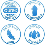 Durex Glijmiddel Sensitive droogt transparant uit en laat geen vlekken achter op stoffen. Het is gemakkelijk schoon te maken met alleen een vochtige handdoek of onder de douche. Daarnaast voldoet Durex Glijmiddel Sensitive aan alle Britse en Europese veiligheidsnormen, wat wordt benadrukt door het CE en BSI Kitemark.