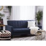 De Beliani VEHKOO Slaapbank is een stijlvolle en comfortabele toevoeging aan je interieur. Met zijn donkerblauwe kleur en eenvoudige lijnen heeft deze bank een tijdloze uitstraling die perfect past bij verschillende interieurstijlen. Bovendien biedt de bank niet alleen plaats aan drie personen, maar kan hij ook eenvoudig worden omgevormd tot een comfortabel bed dankzij het handige kliksysteem.