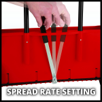 Met de dubbele duwstang van de GC-SR 12 kun je de strooiwagen gemakkelijk en veilig geleiden. Daarnaast is de strooihoeveelheid eenvoudig te regelen met de instellingshendel aan de achterzijde van het 12 liter grote reservoir. Dit zorgt ervoor dat je altijd de juiste hoeveelheid materiaal kunt verspreiden.