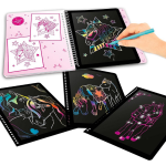 Met het Magic Scratch boek van Miss Melody kun je jouw creativiteit de vrije loop laten en regenboogvrolijke paardentekeningen maken. Het boek bevat 20 zwarte pagina's die je kunt ontdekken met behulp van de speciale kras-pen. Laat je verbazen als je met elke krashaal prachtige kleuren tevoorschijn tovert!