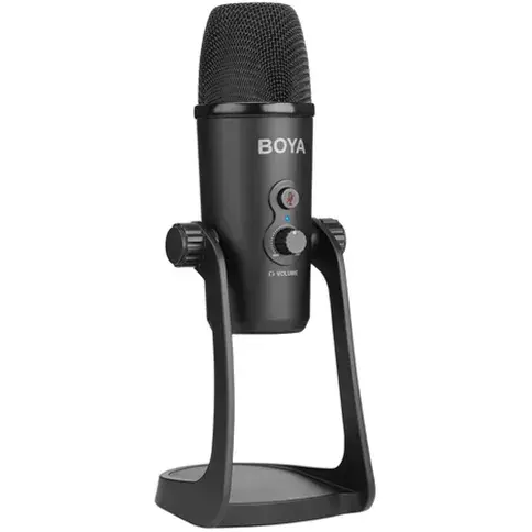 De BY-PM700 is voorzien van een volumeregelaar en mute-functie aan de voorzijde van de microfoon, waardoor je gemakkelijk de geluidsweergave kunt aanpassen. Daarnaast beschikt de microfoon over een 3.5 mm-uitgang aan de onderzijde, waar je een koptelefoon op kunt aansluiten om het opgenomen geluid in real-time te beluisteren. Je kunt de microfoon ook op een statief plaatsen met behulp van de 5/8" female schroefdraad aan de onderzijde.